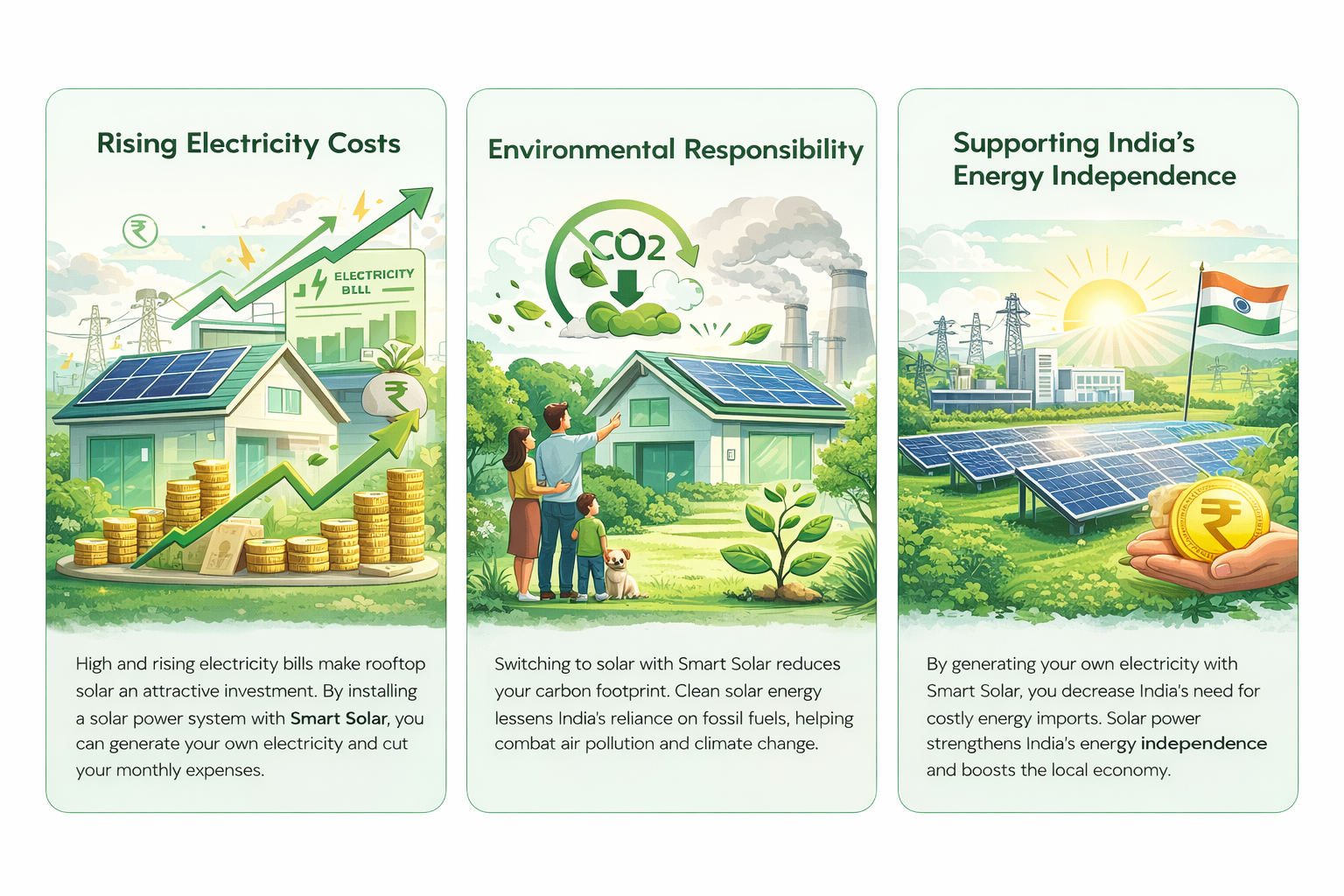 Solar energy is reshaping the way Indian households consume power. With Smart Solar, you can convert your rooftop into a reliable energy asset backed by government support. Clean solar power not only reduces monthly electricity expenses but also helps households move toward energy security and environmental responsibility.